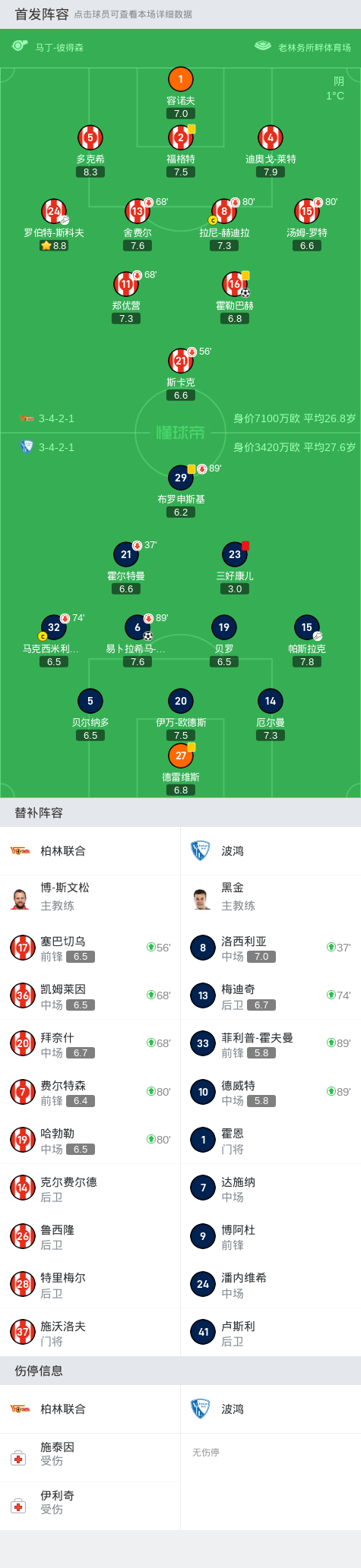 第23分钟,波鸿球员帕斯拉克助攻易卜拉希马-西索科打入一球。