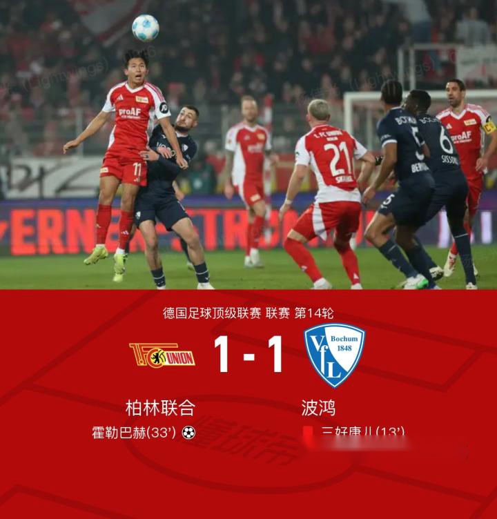 在德国足球顶级联赛第14轮的较量中,柏林联合坐镇主场迎战波鸿。比赛中,波鸿的三好康儿因犯规被罚下场,给球队带来了不小的挑战。然而,波鸿并未因此退缩,帕斯拉克送出精妙助攻,易卜拉希马-西索科成功破门,为波鸿取得领先。柏林联合迅速调整战术,罗伯特-斯科夫精准传球,助攻霍勒巴赫扳平比分。最终,双方以1-1握手言和,各取一分。