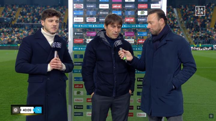 在意甲第16轮那不勒斯客战乌迪内斯的比赛开始前,孔蒂接受了DAZN的采访。