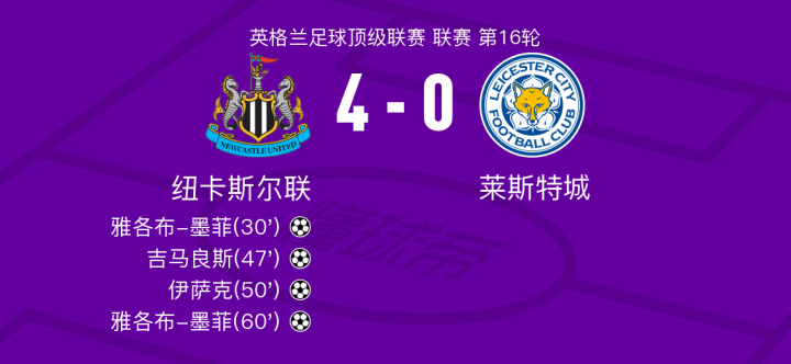 北京时间12月14日纽卡斯尔联vs莱斯特城,伊萨克得到全场最高的9.0分,考迪得到全场最低的5.6分