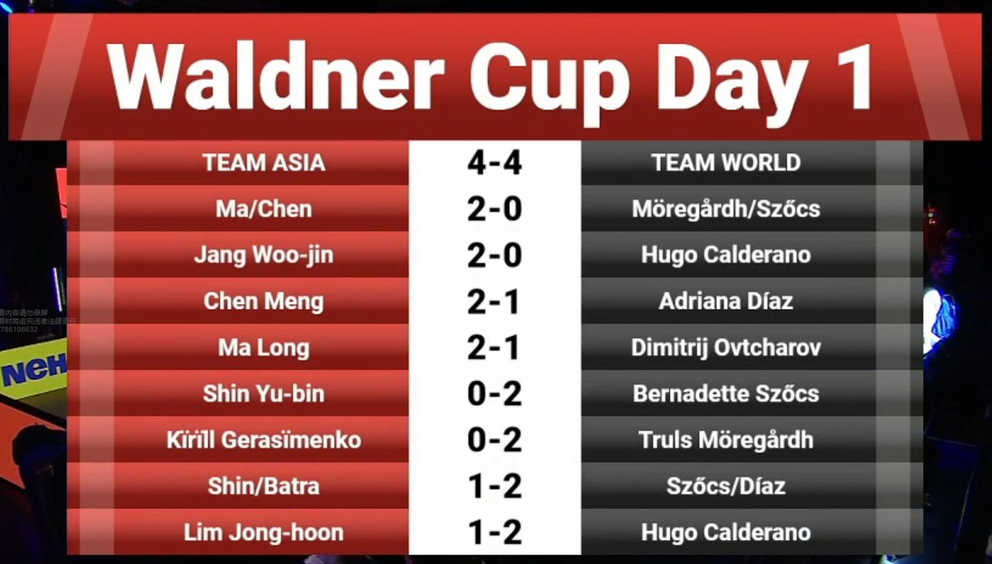 经过八盘激烈的对决,马龙率领的亚洲队在4-0领先的情况下被瓦尔德内尔率领的世界队连扳4盘扳平,接下来比赛将在12月15日晚继续,而且每赢一盘将获得2分(首日是1分),竞争势必更加激烈,精彩值得关注!详细战况请看下文。