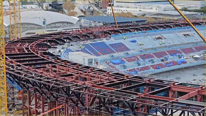 社交平台上的账户“CampNou Updates Live” 发布了一系列视频,展示了工人们为整修球场进行的初步施工情况。此外,位于南看台的媒体工作区的安装工作也在推进,这些媒体舱被安置在第二看台的上方座位区域。