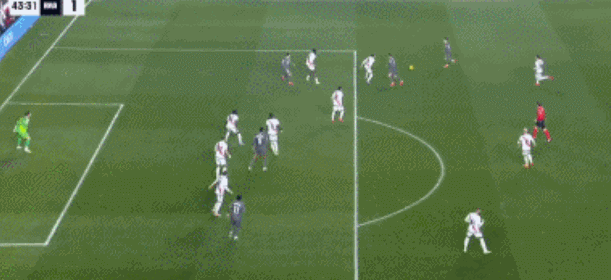 第45分钟,罗德里戈前场左路挑传到禁区内,贝林厄姆中路甩头攻门顶进,皇马扳平,2-2!