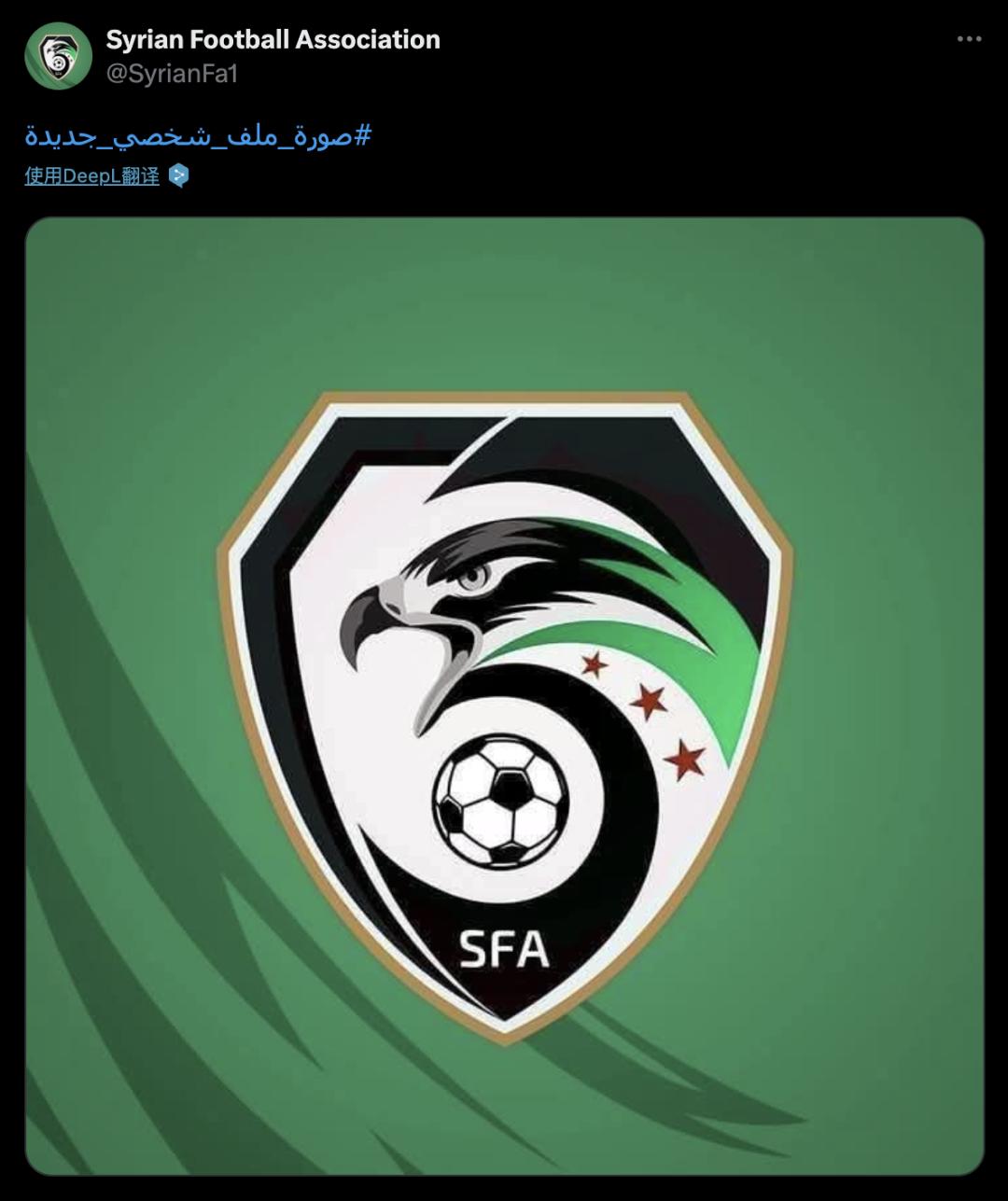 叙利亚足协迅速行动,与他们许多驻外使馆一样有新国旗的马上就换,没有的也能手绘一副——全新的绿色调足协logo很快出炉。叙利亚球迷也异常兴奋,甚至已经P完了图,让国家队队员们穿上了新球衣。