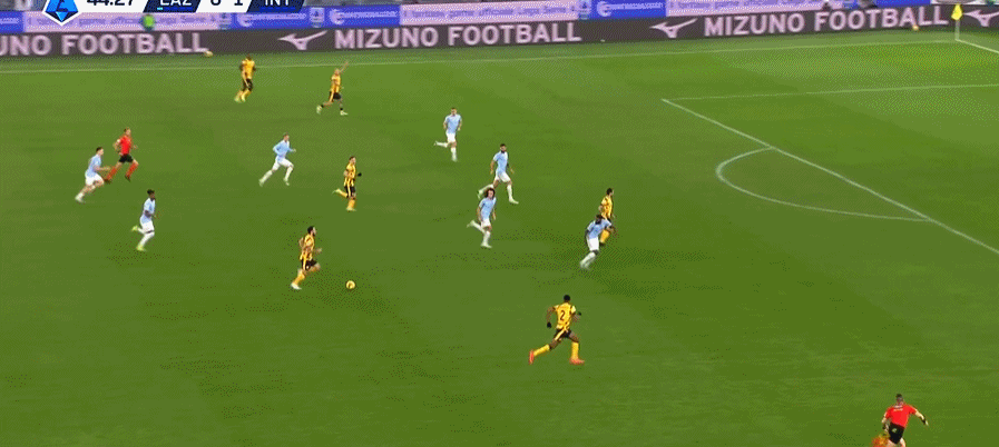 第45分钟,恰尔汗奥卢中路带球推进,邓弗里斯得球传中送到后点,无人盯防的迪马尔科跟进凌空垫射入网,国米2-0领先