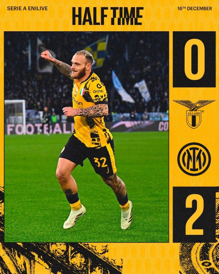 在意甲第16轮的一场焦点战中,国际米兰在半场过后客场2-0领先于拉齐奥,恰尔汗奥卢开场第41分钟点球打破场上僵局,迪马尔科第45分钟禁区内推射得手。