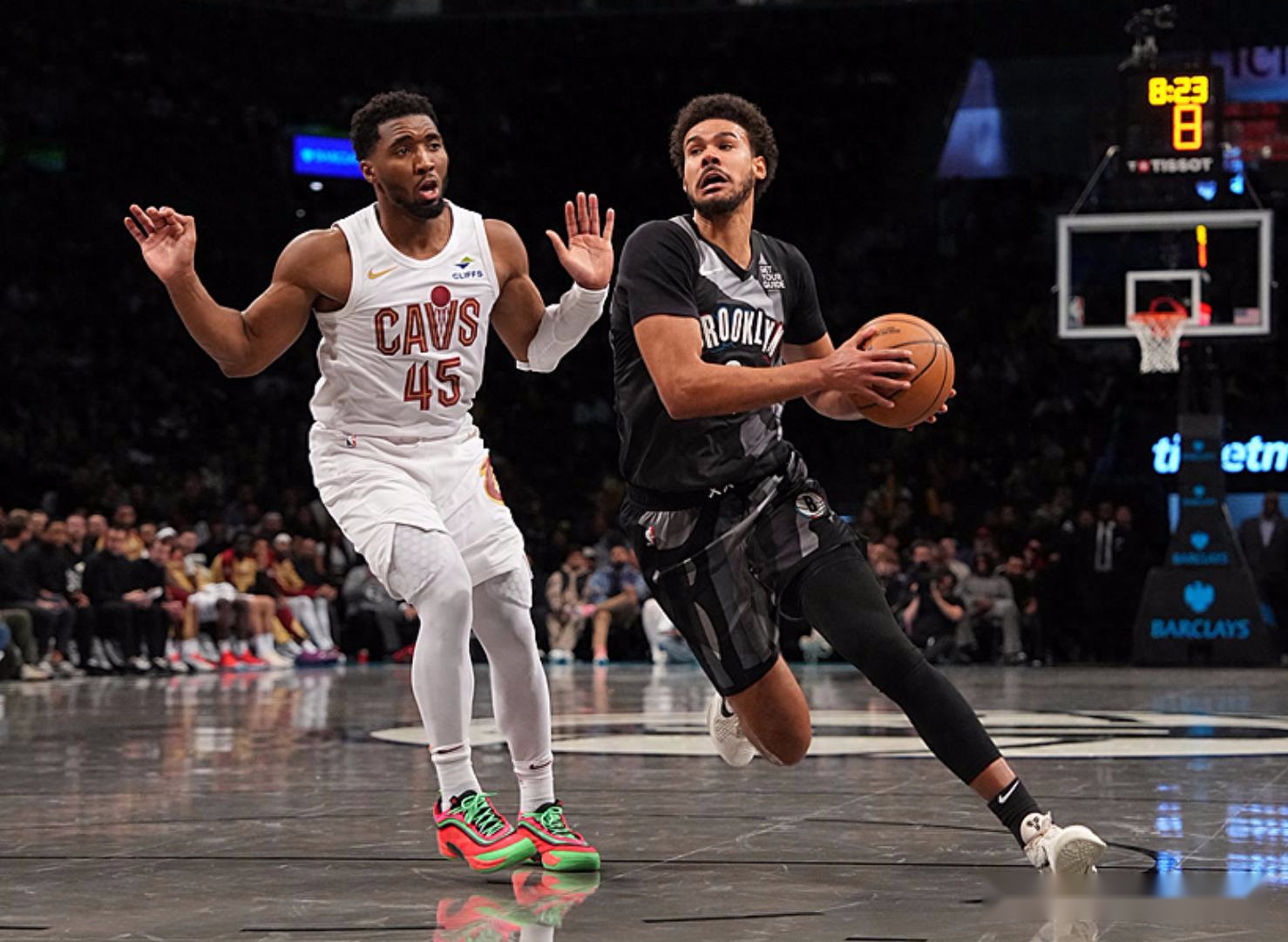 第四节比赛,莫布利连续得分,分差来到32分,约翰逊把分差追到27分,莫布利、米切尔把分差扩大到35分,比赛还剩7分多钟,双方撤下主力,最终骑士以130-101大胜篮网。