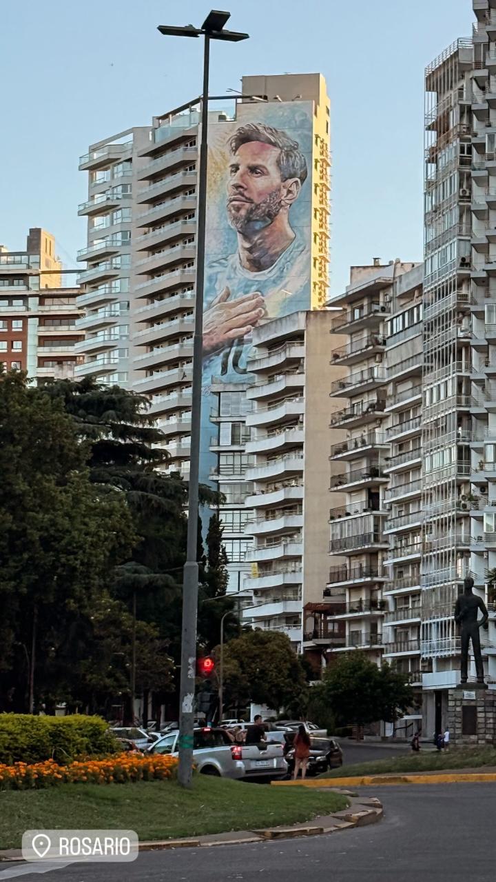 梅西的妻子安东内拉晒出自己在罗萨里奥拍到的巨型梅西壁画。