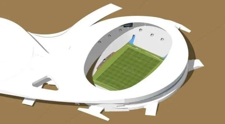 取消现有塑胶跑道等田径比赛设施,并根据现有看台视线条件,反向推理,将足球场地下沉4.8米;