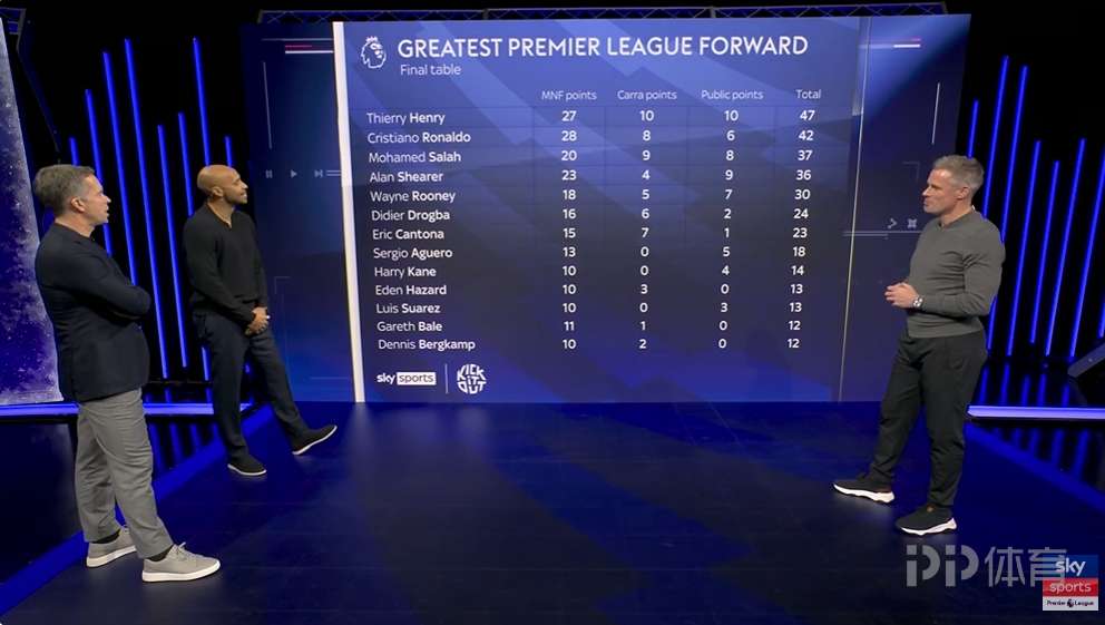 天空体育本周节目《周一足球夜》评选“英超历史最伟大前锋”,候选名单包含13人,评选过程包括节目组打分、卡拉格评选和网友投票三个部分。
