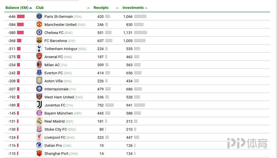 转会净损失统计的范围是,自2015年至今俱乐部从转会市场中购入而现在不在俱乐部的球员。比如说,巴黎花1.8亿欧从摩纳哥购入姆巴佩,而他在今年免签去了皇马,那巴黎的在姆巴佩一个人身上的转会净损失就有1.8亿欧。