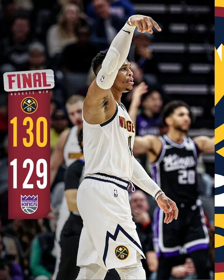 在今天上午结束的一场NBA常规赛里,掘金与国王你来我往,交替领先,最终掘金以130-129险胜国王,取得了三连胜,排名也暂时上升到了西部第五的位置。