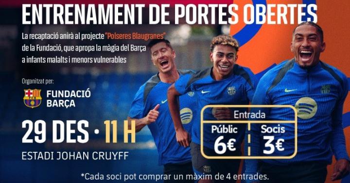 巴塞罗那一线队将于12月29日在约翰-克鲁伊夫球场举行公开训练,这是巴塞罗那足球俱乐部基金会每年为慈善事业而做的活动。