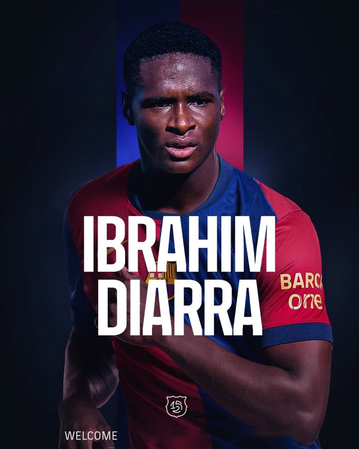 巴萨官方发布公告表示,巴塞罗那足球俱乐部和非洲足球学院就球员易卜拉欣-迪亚拉的转会达成协议,易卜拉欣-迪亚拉将加盟巴塞罗那竞技,并签订了一份为期三年半的合同,有效期至2028年6月30日。