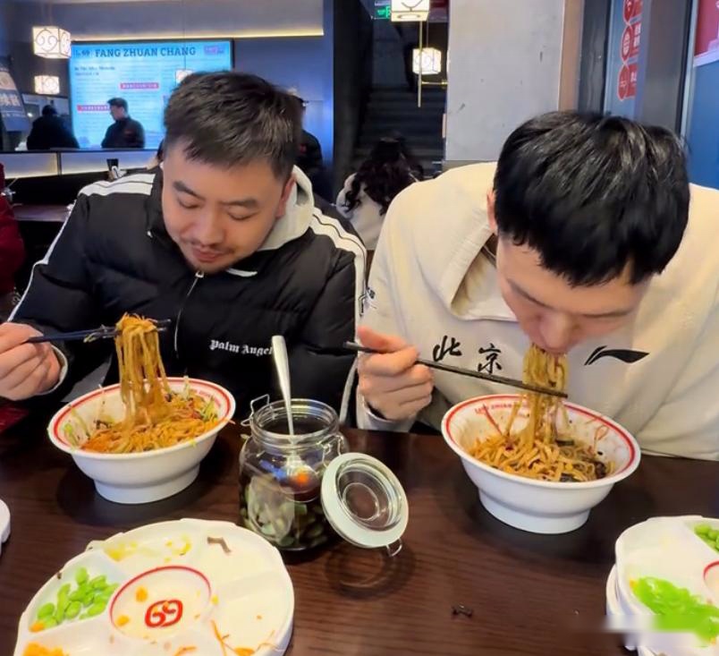 当周琦开吃后,他都不说话了,在那疯狂炫,这也证明炸酱面的好吃。此时周琦还强调:改天拉陈盈骏来。不得不说,他和周琦的关系是真好。其实在球场上,他们两个需要频繁挡拆。所以在这种趋势下,周琦和陈盈骏就和亲密搭档一样。