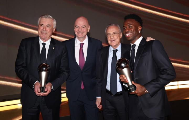 在刚刚结束的国际足联2024年度颁奖典礼中,皇家马德里成为了最大赢家,他们获得了两大最有分量的奖项。