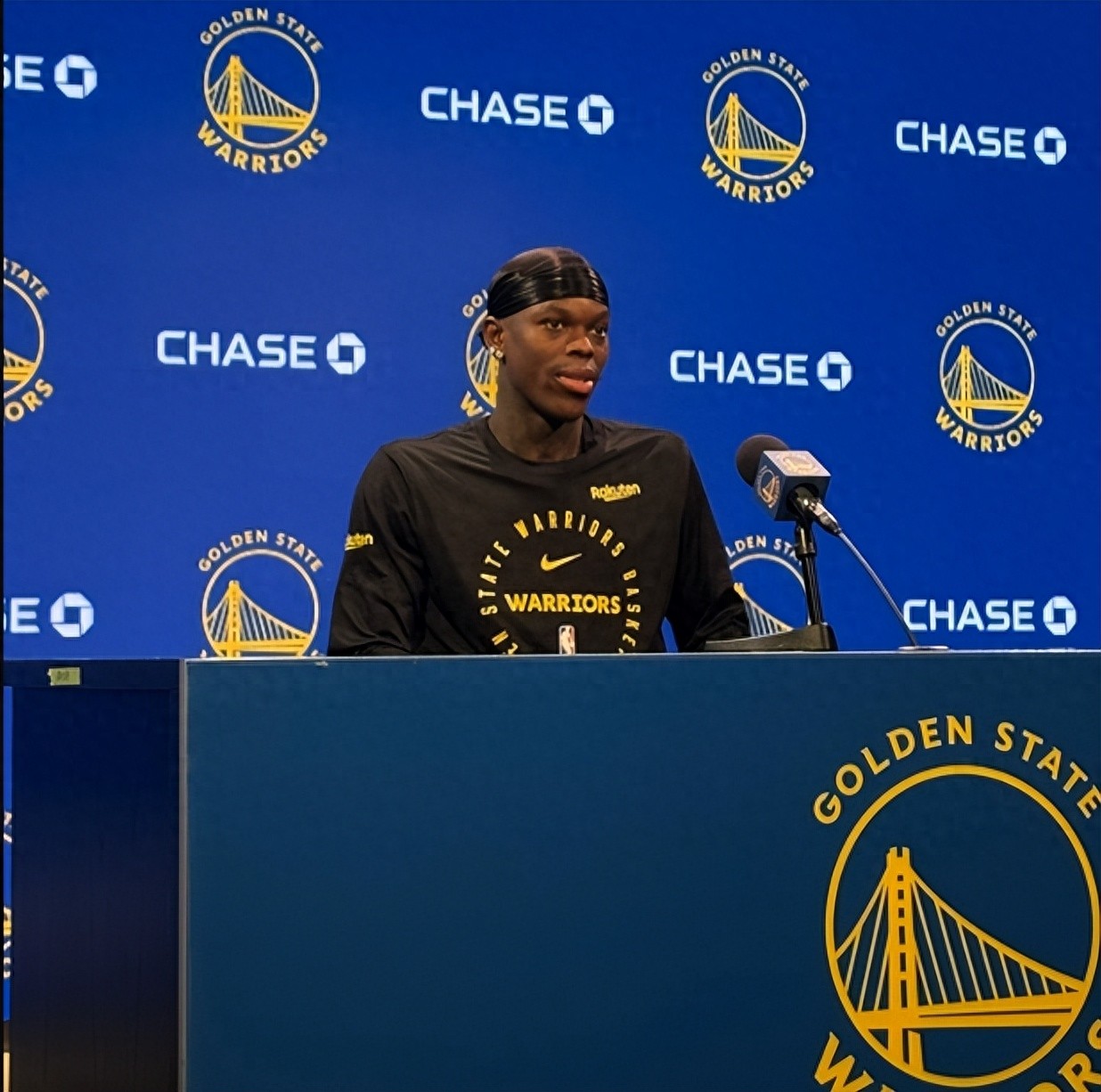 勇士球员丹尼斯-施罗德今天接受采访。