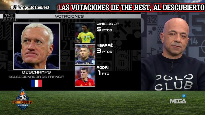 维尼修斯当选FIFA年度最佳男足球员后,相关投票详情也随之出炉,但法国队主帅德尚与法国记者投票首位均是维尼修斯,而不是姆巴佩。
