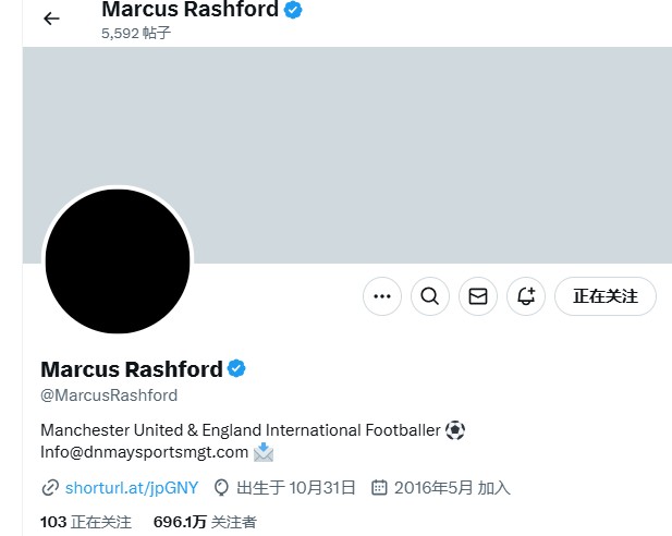 在拉什福德的主页可以看到,他已经把自己的头像换成了全黑色。