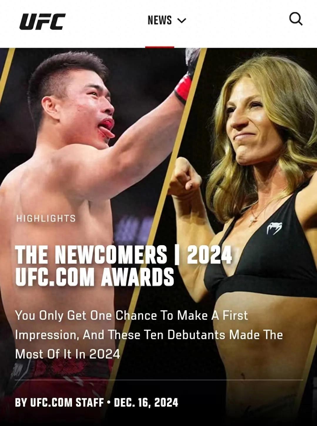 在该榜单的介绍语中,UFC这样说,“你只有一次机会给人留下第一印象,而这十位新人在2024年做得最多。”