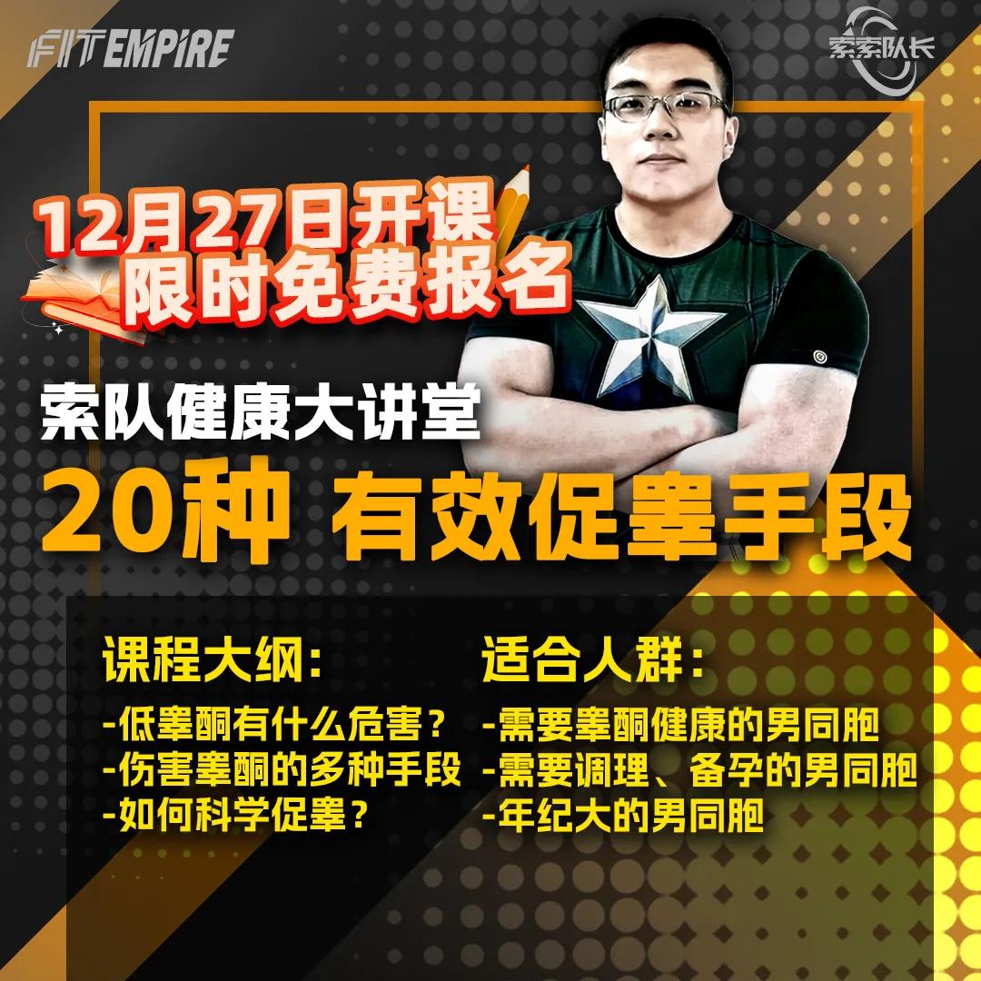 如果你也是爱学习的人群,想要系统了解科学促睾、避免交智商税,那么你可以参加索队的《促睾20种方法》课程。