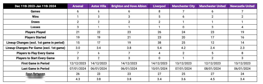 最近,The Athletic请到了一位曾经的职业俱乐部运动科学主管介绍关于圣诞新年快车,以及球队轮换方面的问题,其中提到了几个有趣的例子。