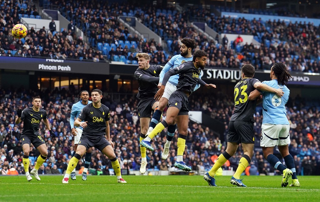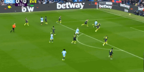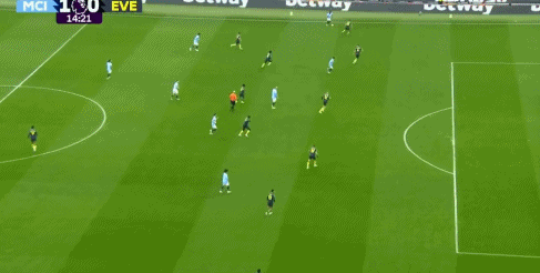 比赛的第3分钟,福登左路横传,格瓦迪奥尔头球冲顶击中立柱。第13分钟,多库左路斜传撕破了埃弗顿的4人防线,贝尔纳多-席尔瓦反越位突入禁区之后铲射,球打在后卫脚上变线飞入球网。