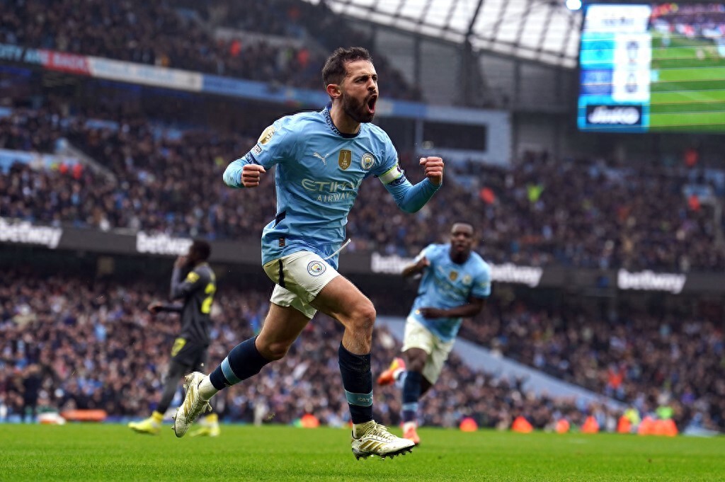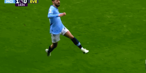 在2024-25赛季英超第18轮,曼城主场对阵埃弗顿。在格瓦迪奥尔第3分钟就头球中柱之后,贝尔纳多-席尔瓦第13分钟为曼城首开纪录。