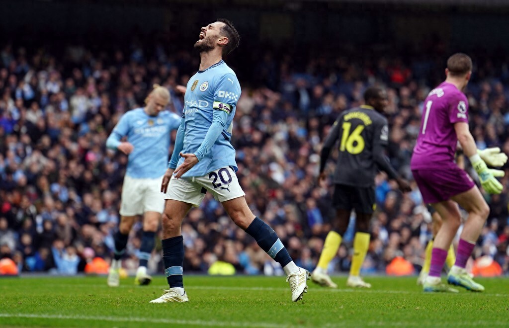 在2024-25赛季英超第18轮,曼城主场对阵埃弗顿。在为曼城打破僵局之后,B席错失良机,而在短短3分钟之后,埃弗顿就扳平了比分。