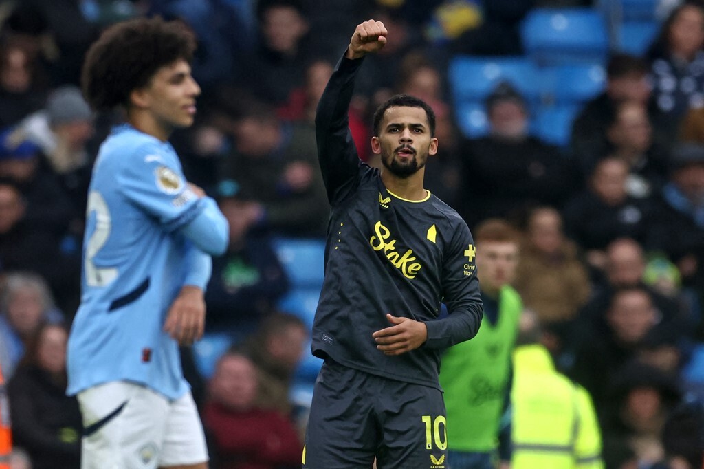 然而,仅仅过了3分钟,曼城就遭到了惩罚。比赛的第36分钟,杜库雷右路斜传,阿坎吉解围失误,无人盯防的恩迪亚耶扫射破门,为埃弗顿扳平比分。