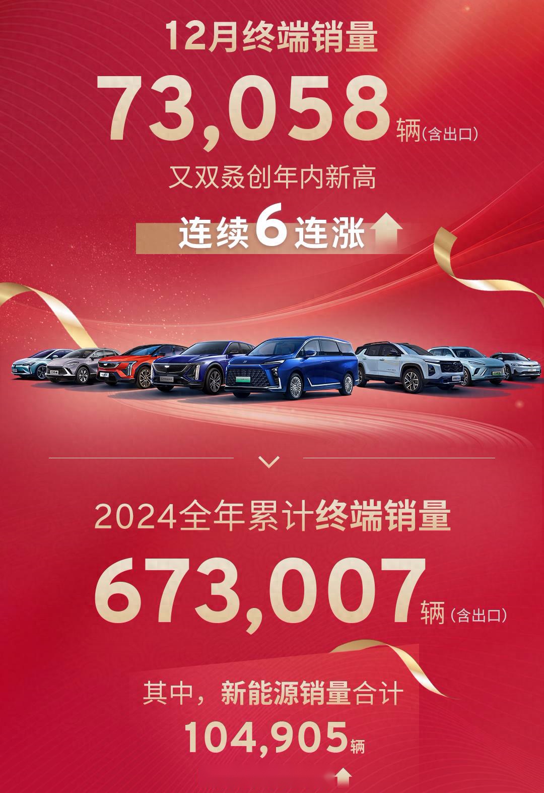 在豪华品牌方面,2024年凯迪拉克品牌全年累计销量将近13万辆,同样连续6个月增长,半年销量激增56%,持续向好。