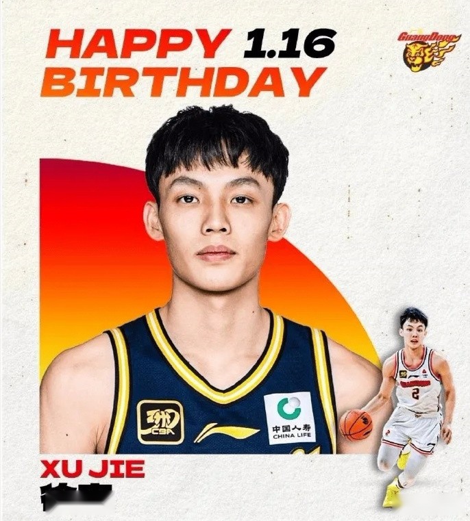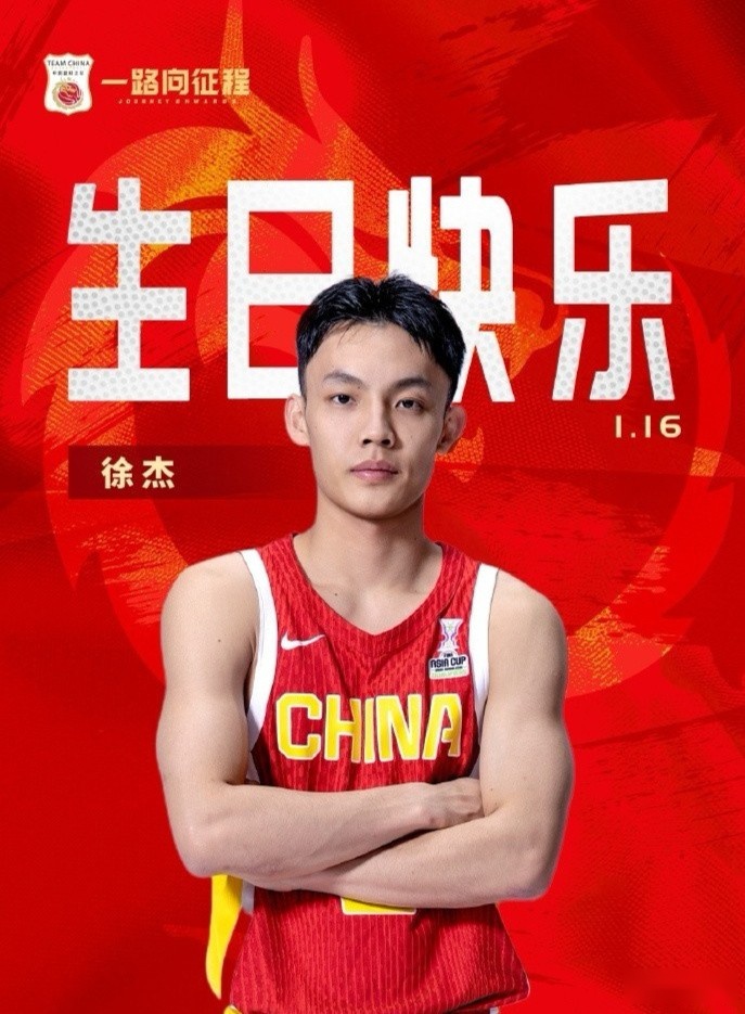 今天是广东男篮后卫徐杰的25岁生日,中国篮球之队为其送上祝福。