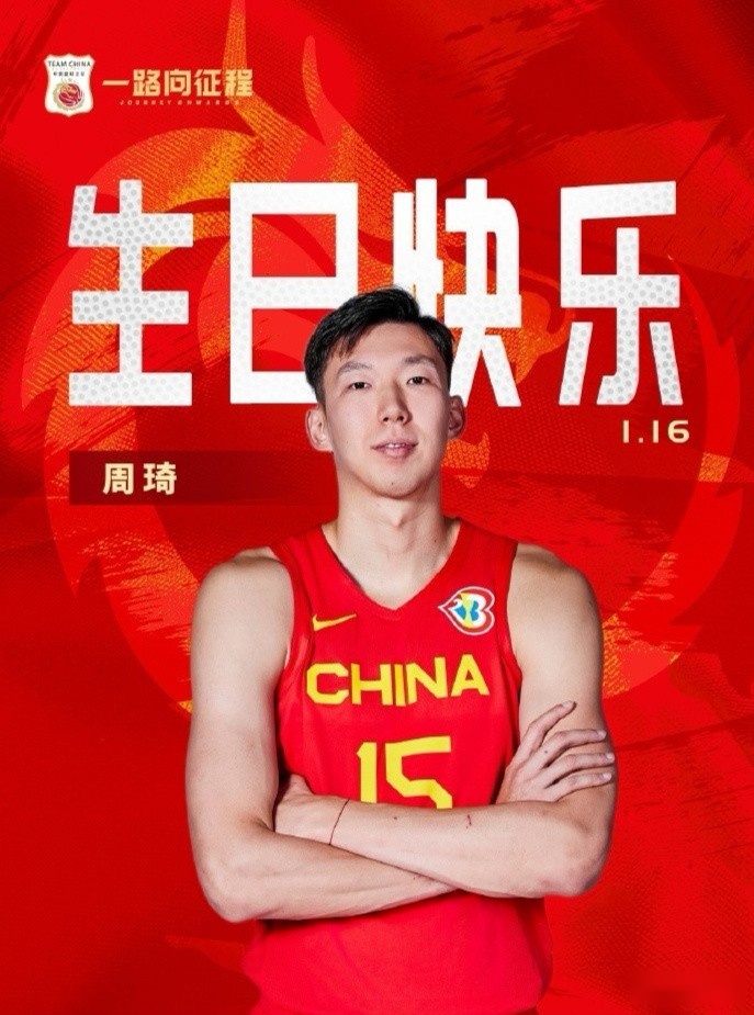 今天是北京男篮中锋周琦的29岁生日,中国篮球之队送上生日祝福。