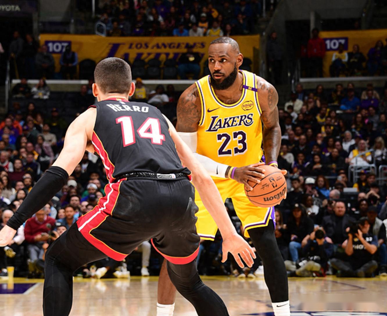 湖人主场迎战热火,热火缺少了巴特勒,对于3连败的湖人而言此战必须拿下,不过上半场比赛热火一直压制湖人,一度领先14分,半场战罢领先12分,第三节湖人追回10分,第四节湖人打出强势表现,单节赢了11分,最终湖人以9分优势击败热火完成逆转。詹姆斯15中9得到22分5板9助攻,浓眉21中10得到22分11板4助攻,八村垒15中9得到23分8板,热火方面希罗18中12(三分12中7)得到34分4板3助攻,阿德巴约7中3得到10分4板5助攻。
