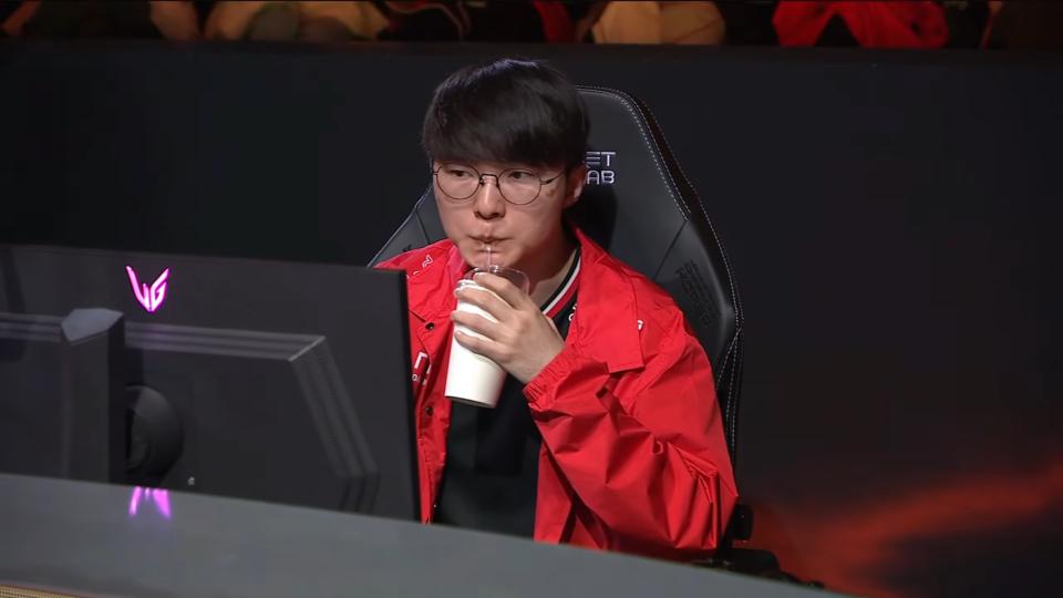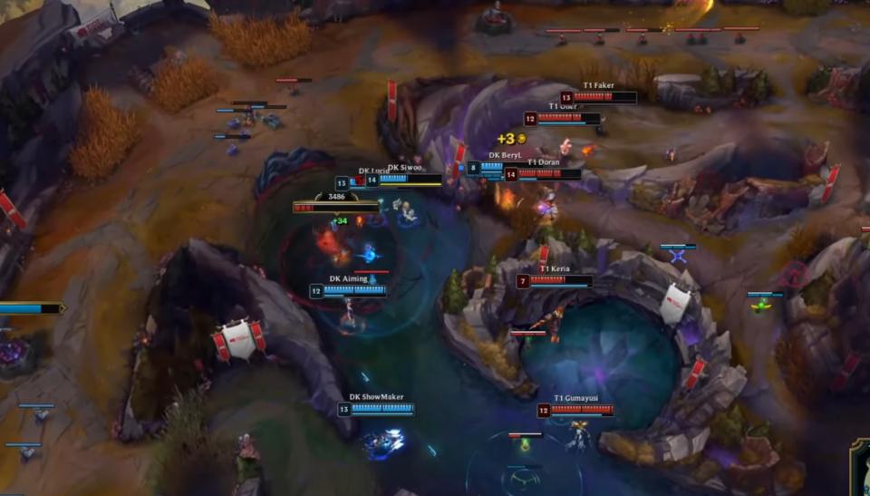 双方的首局,一级团T1就轻松拿下对面AD的一血,率先完成了先机的其中一个任务,后续双方上下线互换,双方AD在上路火拼,结果gumayusi被aiming单吃,随后又分别在下路被抓,以及中路被showmaker单杀,这导致T1的节奏出现了严重的问题,当游戏来到中期,T1整体的经济已经落后4K左右了。