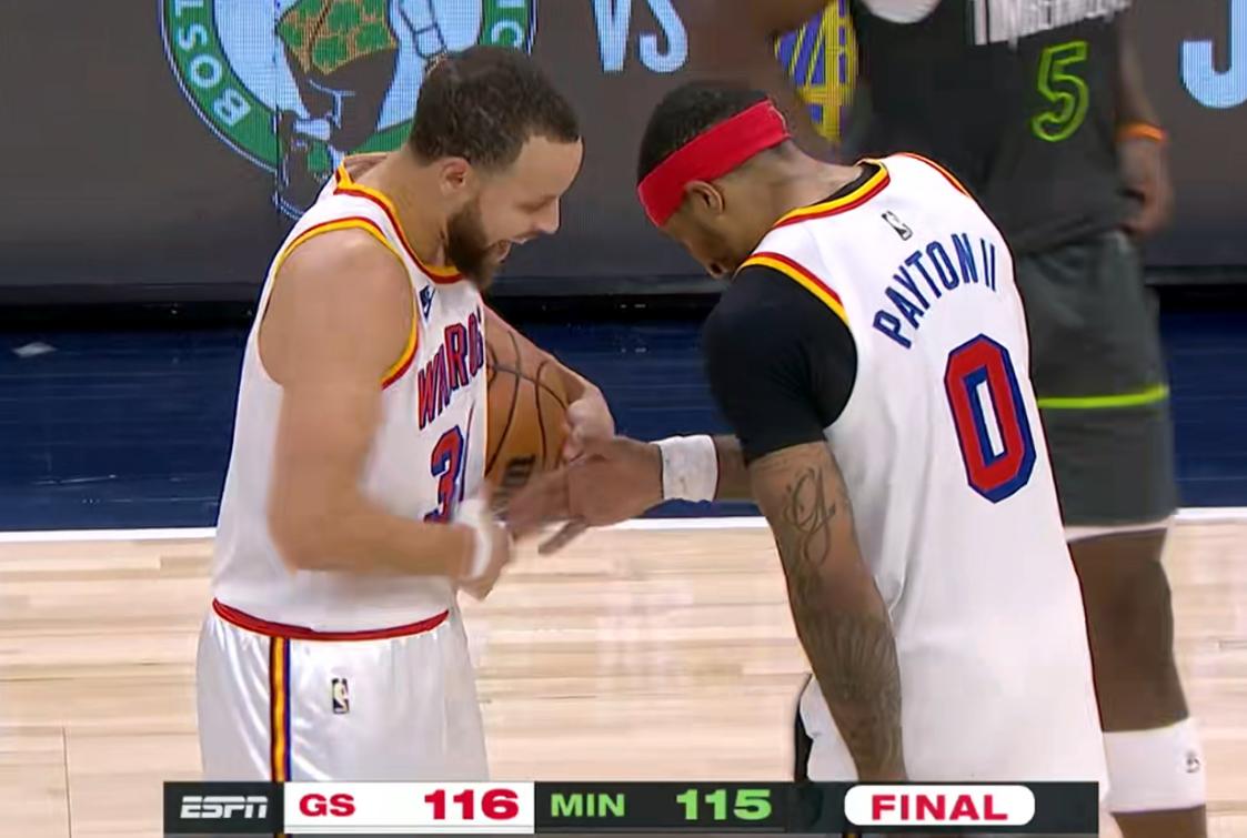 沃克和丹尼尔斯也内突外投,森林狼追到只差3分。中段维金斯抛投止血,爱德华兹和穆迪对轰三分球,维金斯续上三分后,丹尼尔斯对抗上篮,里德补篮,森林狼追到只差2分。希尔德造三分犯规,最后3分钟,迪文岑佐和库里对飙三分球,迪文岑佐很准,联合里德追平!最后1分钟,库里三分球一箭穿心,麦克丹尼尔斯先追两分,维金斯两罚全中,爱德华兹三分打铁,穆迪失误给机会,森林狼继续追两分,虽然最后时刻爱德华兹命中三分,但时间走完。最终勇士116-115险胜森林狼。