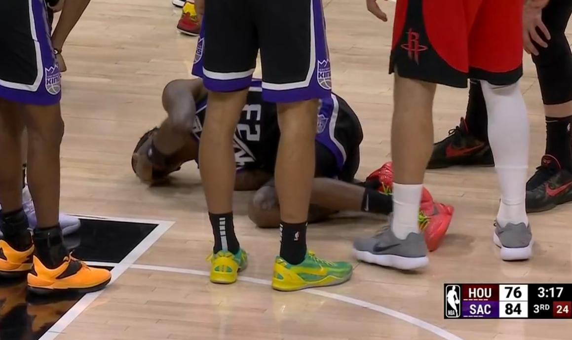 阿门两次低级失误,穆雷三分打停火箭,申京大帽福克斯,申京抢断后助攻狄龙三分缩小到1分,国王暂停后申京又抢断中伊森造犯规反超,蒙克2+1,德罗赞2+1,申京造小萨第六次,伊森三分命中,狄龙无球犯规送一罚一掷,福克斯连续三个罚球全中,格林抢了一个三分国王暂停。狄龙6犯离场,蒙克两罚全中火箭暂停,格林绝平三分不中比赛结束。