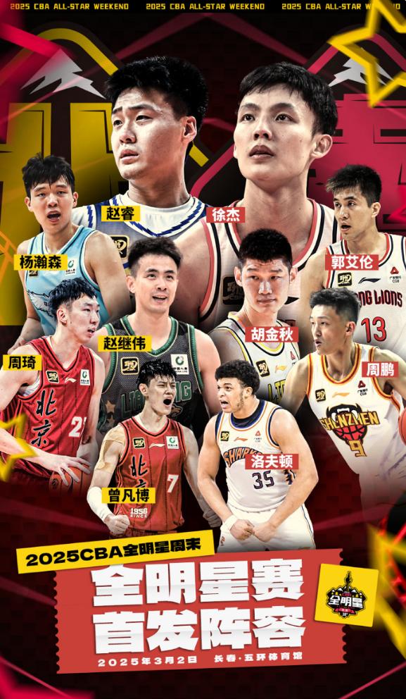 北区的全明星先发:赵睿、赵继伟、曾凡博、周琦、杨瀚森;