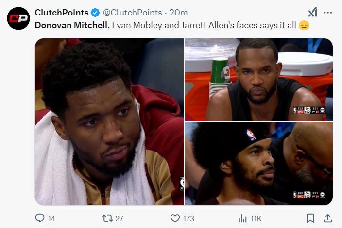 末节米切尔、莫布里、阿伦在场下都是一脸严肃。