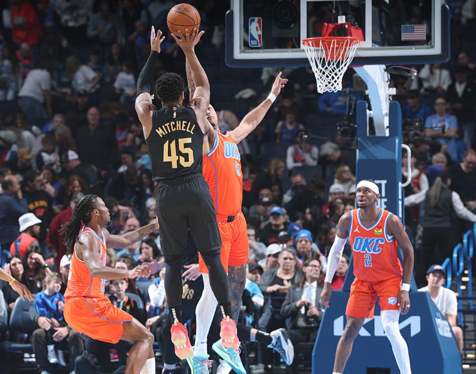 1月9日雷霆VS骑士一番战时,米切尔35分钟,16中3,三分7中2,拿到11分6篮板4助攻,命中率18.8%,真实命中率31%。米切尔两战雷霆31中6,三分11中3,命中率19.3%,三分命中率27.2%。