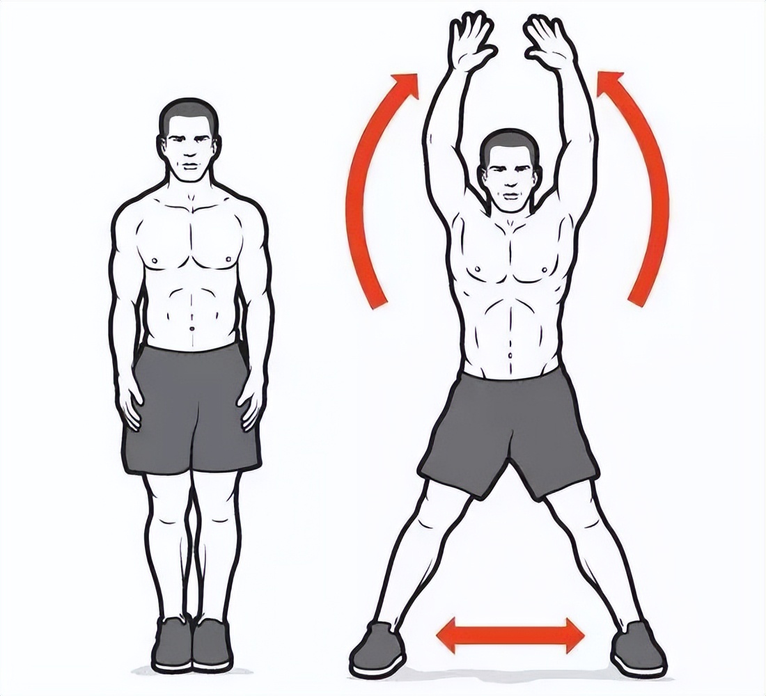 在进行开合跳之前,我们要先进行充分的热身,活动关节跟肌群,促进血液循环,才能更好的进入运动模式,降低受伤几率。