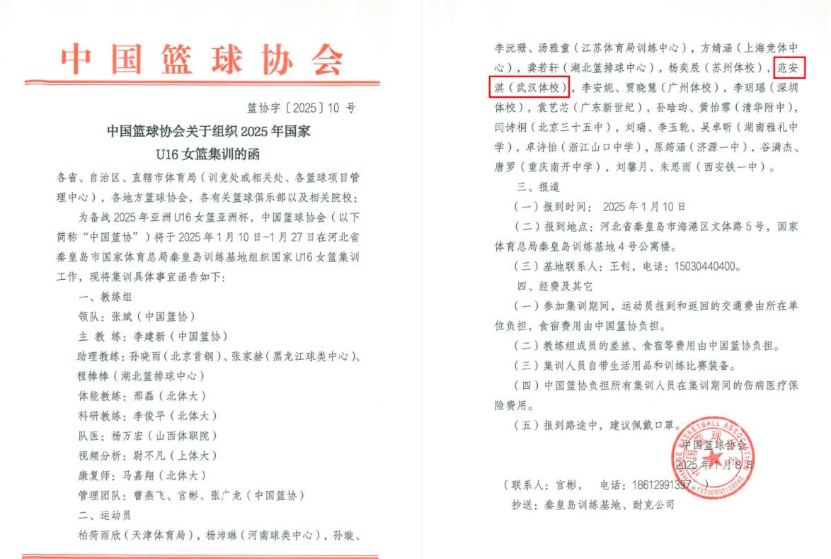 北京时间1月17日,为备战2025年亚洲U16女篮亚洲杯,中国篮球协会于2025年1月10日-1月27日在河北省秦皇岛市国家体育总局泰皇岛训练基地组织国家U16女篮集训工作。值得注意的是,中国女篮名将 李月汝 的妹妹李玉乾也入选了此次集训名单。
