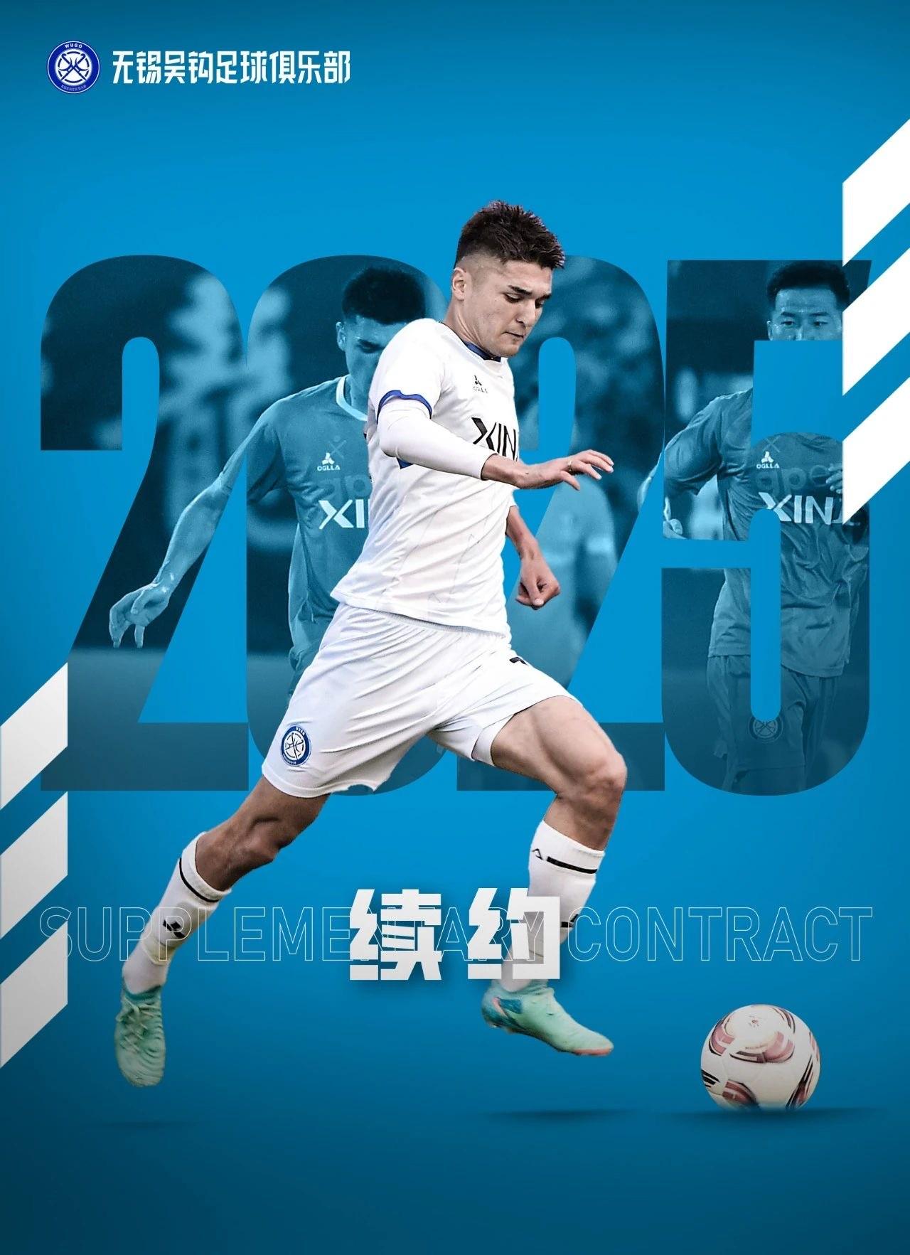 我们在此郑重宣布,经双方协商一致,无锡吴钩足球俱乐部与球员艾合买提-吐尔逊江完成续约。2025赛季,他将继续为无锡而战!