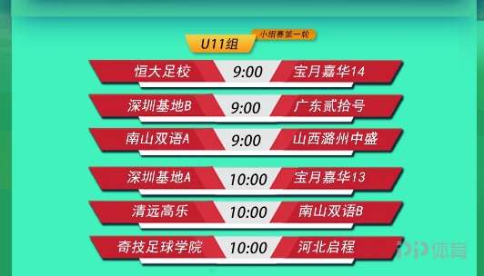 今日U11组小组赛第一轮,恒大足校29-0宝月嘉华14队,本场比赛时间为60分钟。