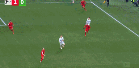 第21分钟,格雷茨卡禁区外远射,皮球直奔死角,拜仁1-0狼堡