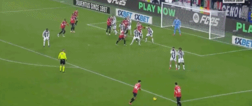 姆班古拉射门,球打在埃默松脚上折射破门,尤文1-0米兰