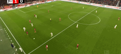 第90+1分钟,内兹左路低平球传中,无人盯防的克莱因丁斯特禁区端射破门,勒沃库森3-1门兴!