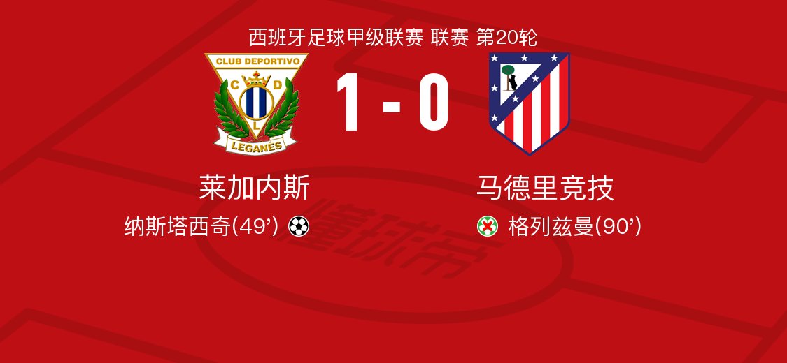 北京时间1月18日莱加内斯vs马德里竞技,纳斯塔西奇得到全场最高的8.8分, 格列兹曼 得到全场最低的6.2分