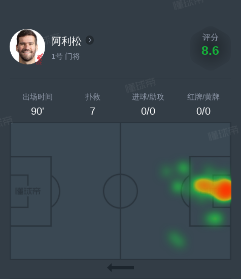 北京时间1月18日布伦特福德vs利物浦,阿利松7扑救。