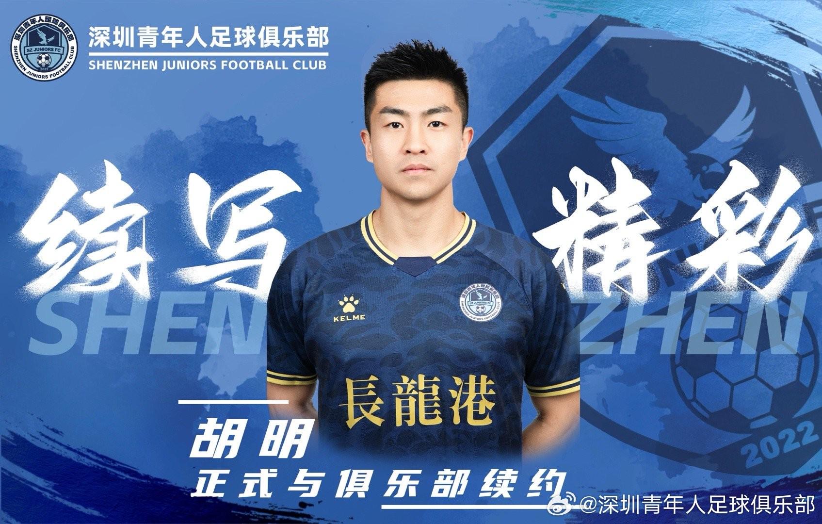 北京时间1月17日,深圳青年人足球俱乐部官方宣布,经过俱乐部与球员充分协商,已经与胡明、门阳、钟俊泽三位球员完成了续约。